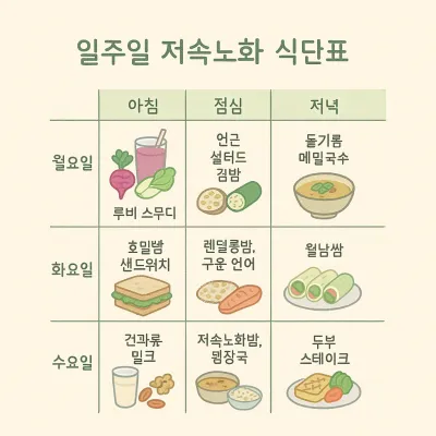 일주일 저속노화 식단표 – 아침, 점심, 저녁 실천하기