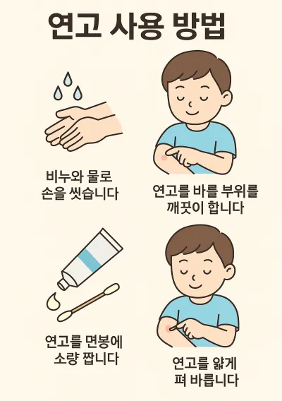 연고는 1일 1~2회 소량만 바르고, 증상이 가라앉으면 즉시 중단해야 합니다. 장기간 사용은 오히려 부작용을 유발할 수 있으므로 주의가 필요합니다.
