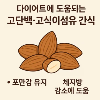 - 다이어트 중 단백질이 부족하면 근육이 빠지기 쉬운데, 아몬드는 식물성 단백질을 적절히 공급해 체지방 감소에 도움이 됩니다.