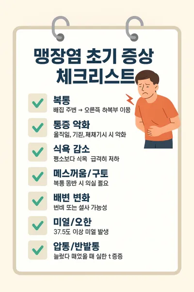 맹장염 초기 증상 체크리스트 한눈에 요약