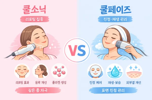 얼굴 처짐과 윤곽이 고민이라면 쿨소닉을, 시술 후 피부 컨디션과 안정감까지 챙기고 싶다면 쿨페이즈 병행을 고려해볼 수 있다. 중요한 것은 유행이나 후기보다 본인의 피부 상태와 목적에 맞는 선택이다.