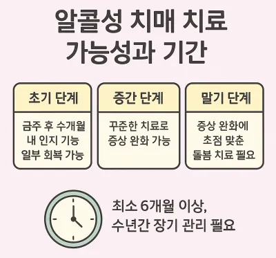 - 초기 단계: 금주 후 수개월 내에 인지 기능 일부 회복 가능