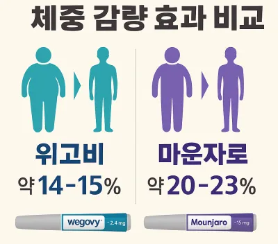 - 체중 감량 효과: 마운자로 > 위고비