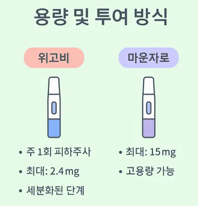 - 위고비와 마운자로는 작용 기전·용량 체계가 다름