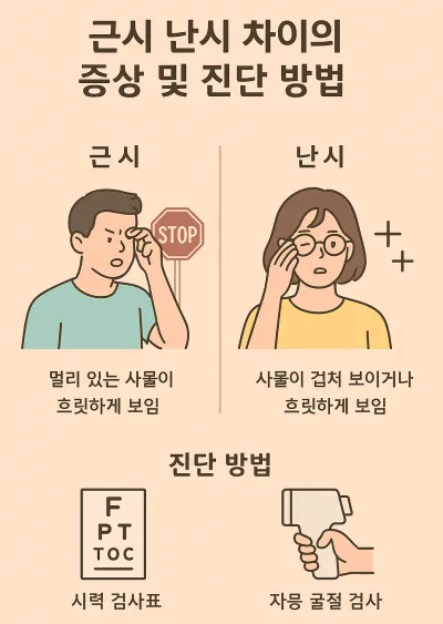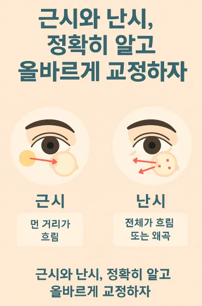 | 주요 증상 | 멀리 흐릿 | 전체 흐림 또는 왜곡 |