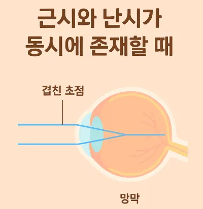 - 복합 근시난시: 멀리도 흐리고, 가까이도 선명하지 않음