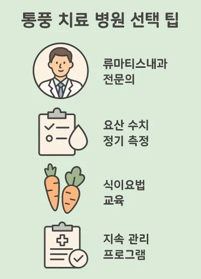 | 통풍 병원 선택 | 전문의 + 장기 모니터링 가능한 곳 |