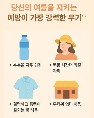 온열질환은 예방이 가장 중요합니다. 누구나 실천할 수 있는 예방 수칙을 평소에 숙지해두세요.