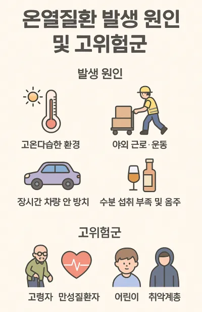 온열질환은 다음과 같은 환경 및 조건에서 특히 쉽게 발생합니다.