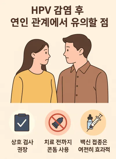 - 감염 사실 공유 및 파트너의 HPV 검사 권장