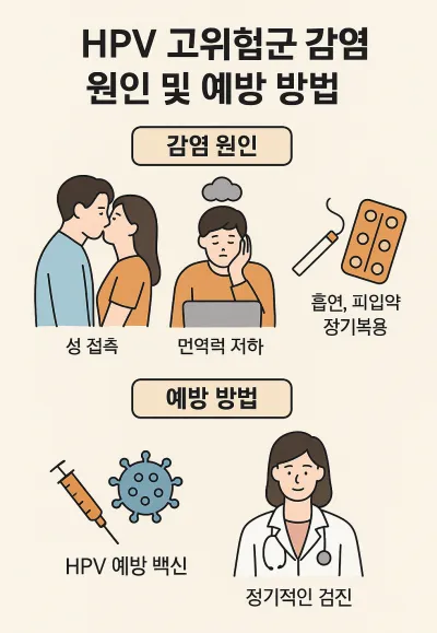 - 면역력 저하, 흡연, 피임약 장기복용 등도 위험 요인