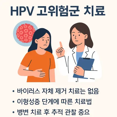 - 반복 감염자 또는 CIN 2 이상 병변 발견 시 치료 병행 필요