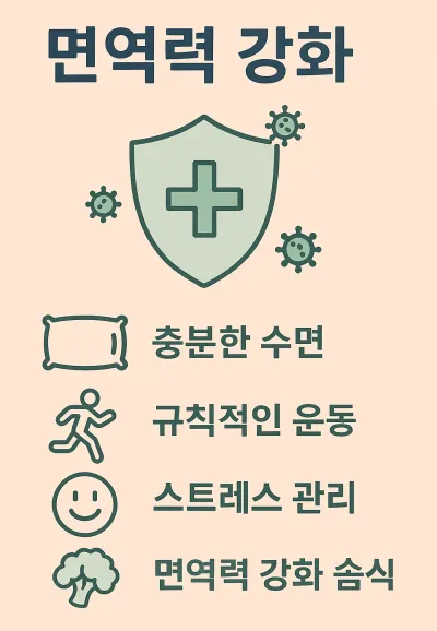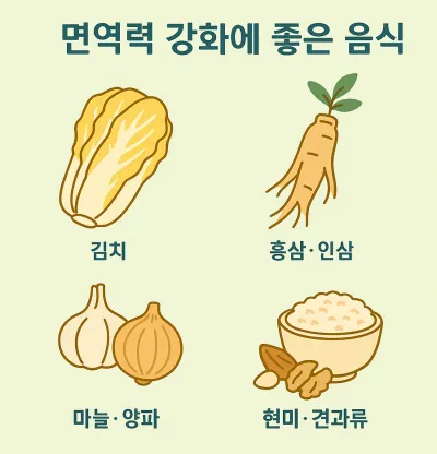 하루아침에 이루어지는 것이 아닙니다. 충분한 수면, 규칙적인 운동, 긍정적인 태도, 올바른 식습관 같은 작은 실천들이 모여 강력한 면역 체계를 만듭니다. 여기에 김치, 마늘, 홍삼, 현미 같은 면역력 강화 음식을 꾸준히 섭취하면 신체 방어력을 크게 높일 수 있습니다.