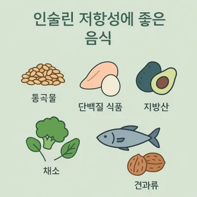 식단 개선은 인슐린 저항성 개선의 핵심입니다. 혈당을 천천히 올리는 저혈당지수(GI) 음식 위주로 식단을 재구성해야 합니다.