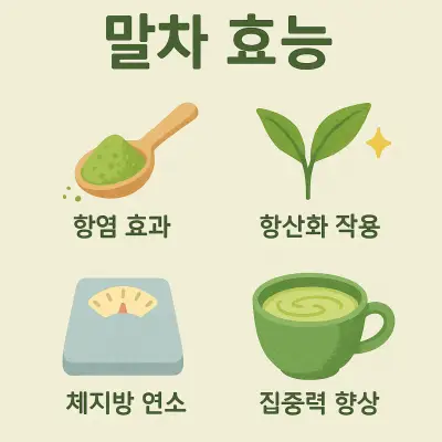 2. 말차 효능: 항염·항산화·다이어트·혈당 안정·집중력 향상