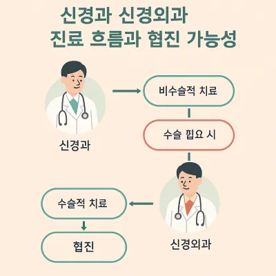 신경과와 신경외과는 전혀 다른 과이지만, 때로는 상호 협진이 필요한 경우도 많습니다. 예를 들어, 뇌졸중 환자가 신경외과 수술 후 회복기에 접어들면 신경과에서 약물 및 인지 재활치료를 진행하기도 합니다.