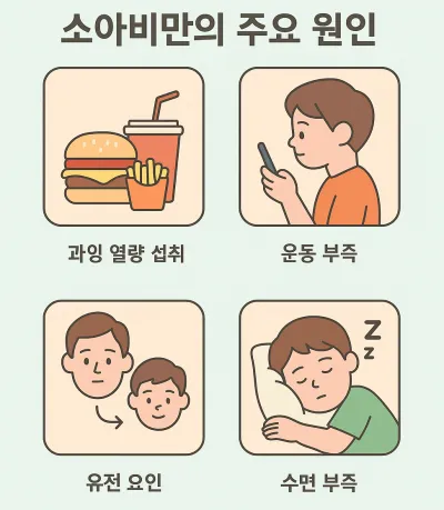 소아비만은 다양한 요인이 복합적으로 작용해 발생합니다.