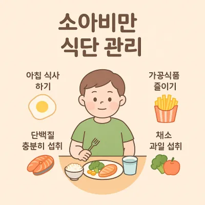 소아비만 관리에서 식단은 가장 중요한 요소입니다. 무리한 다이어트는 성장에 해롭기 때문에 균형을 맞추는 것이 핵심입니다.