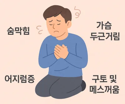 - 숨막힘 증상: 갑자기 공기가 안 들어오는 느낌, 질식할 것 같은 공포