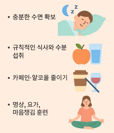 - 카페인·알코올 줄이기: 중추신경 자극 물질 피하기