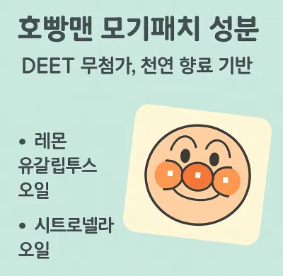 2. 호빵맨 모기패치 성분 – DEET 무첨가, 천연 향료 기반