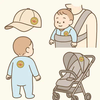 - 아기 손이 닿지 않는 어깨나 등 쪽, 모자 챙, 유모차 캐노피 등에 부착하면 효과적입니다.