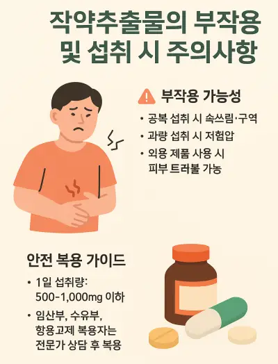 천연 식물 유래 성분이라 안전하지만, 고농도·고용량 섭취 시 다음을 주의해야 한다.