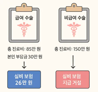 또한, 해당 수술이 건강보험 급여 항목인지 여부도 핵심입니다. 급여 항목은 실비 보험에서 보장되지만, 비급여 항목은 보장이 어려울 수 있습니다.