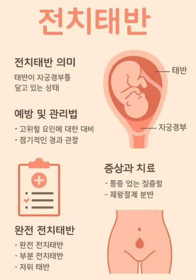 전치태반은 임신 중반 이후 갑작스러운 출혈 위험을 동반할 수 있으므로, 조기 초음파 검진과 주기적인 위치 확인이 필수입니다.