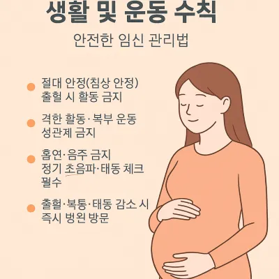 - 격한 활동·복부 운동·성관계 금지: 자궁 수축 유발 가능성 있음.