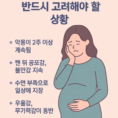 임신 중 악몽은 “무서운 예고”가 아니라 “감정이 쌓였다는 신호”일 뿐이며, 이 신호를 잘 관리하면 더 편안한 임신 기간을 보낼 수 있다.