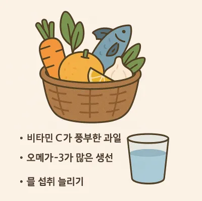 - 비타민 C 풍부한 과일(오렌지, 키위, 딸기): 면역 강화, 항산화 효과
