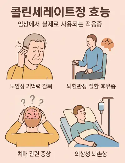 콜린세레이트는 다음 적응증에서 보험 혜택이 가능하다.