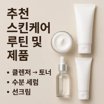 - 수분 섭취: 하루 1.5~2L 물을 꾸준히 마셔 피부 속부터 수분을 채웁니다.